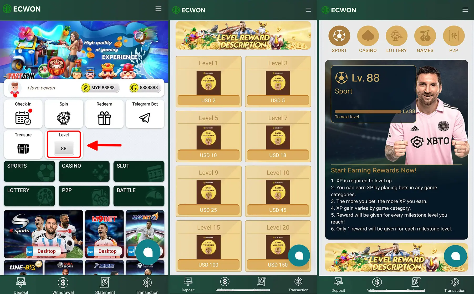 With ECWON free casino games, you can play great games and win huge rewards. We are also offering players many more online casino Malaysia rewards like: